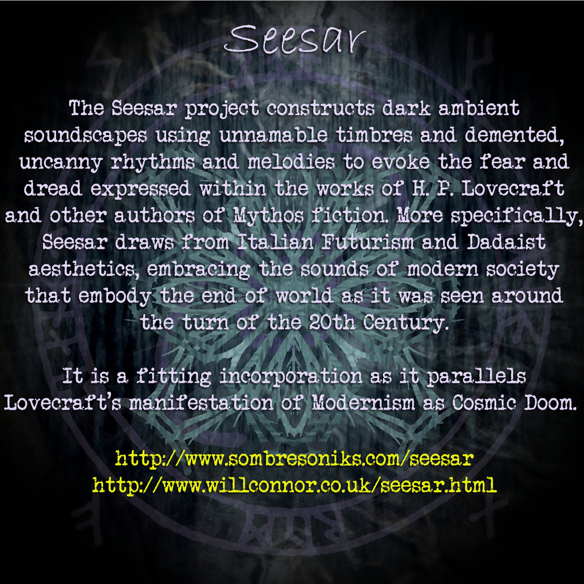 Sombre Soniks is a label mainly specializing in Dark Ambient artists and also Projekts of a Ritual or Ethnomuzikologikal nature.
